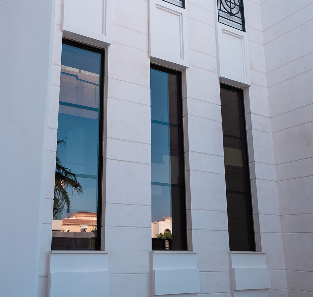 Transparent and simple glass windows with clear panes promote maximum light and simultaneously guarantee visitors an unimpeded view of the surrounding area. They are widely used in residential and commercial buildings across Dubai.